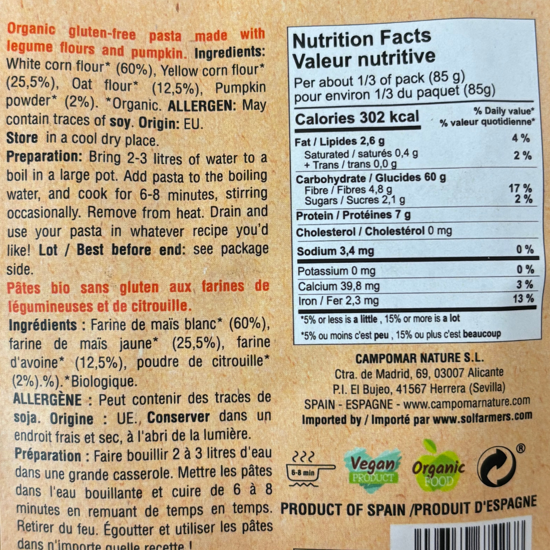 Experience Organic Casarecce Corn, Oat & Pumpkin Pasta, a delicious combination that stands out for its flavor and nutritional value. This gluten-free pasta, enriched with sweet corn, nutritious oats and creamy pumpkin, offers an ideal texture for holding sauces and a touch of natural sweetness. Perfect for healthy and tasty meals, its organic quality ensures a delicious and balanced option.
